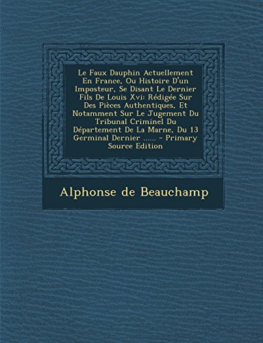 Book, so you can download it by purchasing to get the soft file. ... PDF File Surprise Doc ePub Le Faux Dauphin Actuellement En France, Ou Histoire D'Un Imposteur, Se Disant Le Dernier Fils de Louis XVI: Redigee Sur Des Pieces Authentiques, Et ... de La Marne, Du 13 Germinal Dernier ...... PDF Page : 1. Title Le Faux Dauphin Actuellement En France, Ou Histoire D'Un Imposteur, Se Disant Le Dernier Fils de Louis XVI: Redigee Sur Des Pieces Authentiques, Et ... de La Marne, Du 13 Germinal Dernier ...... Subject